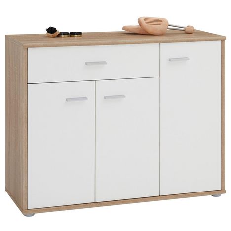 Meuble à chaussures CAMILLE, en mélaminé décor chêne sonoma et blanc mat