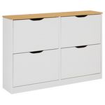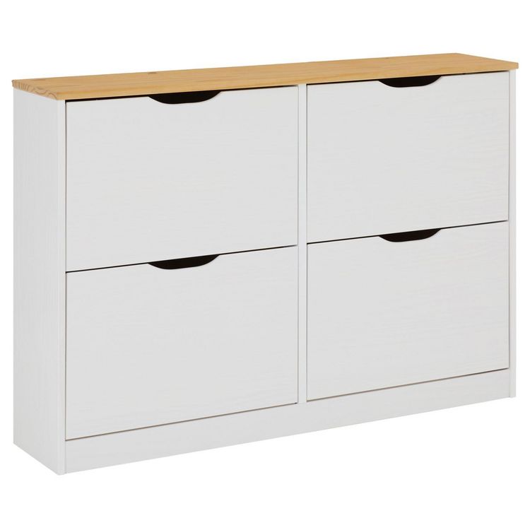 Meuble à chaussures BASIL avec 4 abattants, en pin massif - Coloris châtaignier