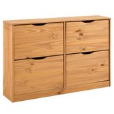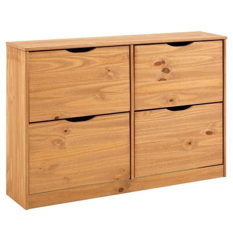 Le meuble à chaussures en pin Basil... sera parfait pour aménager votre entrée. Grâce à ses 3 ou 4 abattant, vous pourrez facilement y ranger toutes vos chaussures à l'abri de la poussière. Ce meuble à chaussures en bois massif, à la fois intemporel et chaleureux, apportera beaucoup de charme à votr