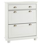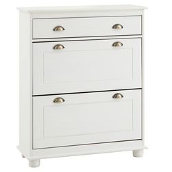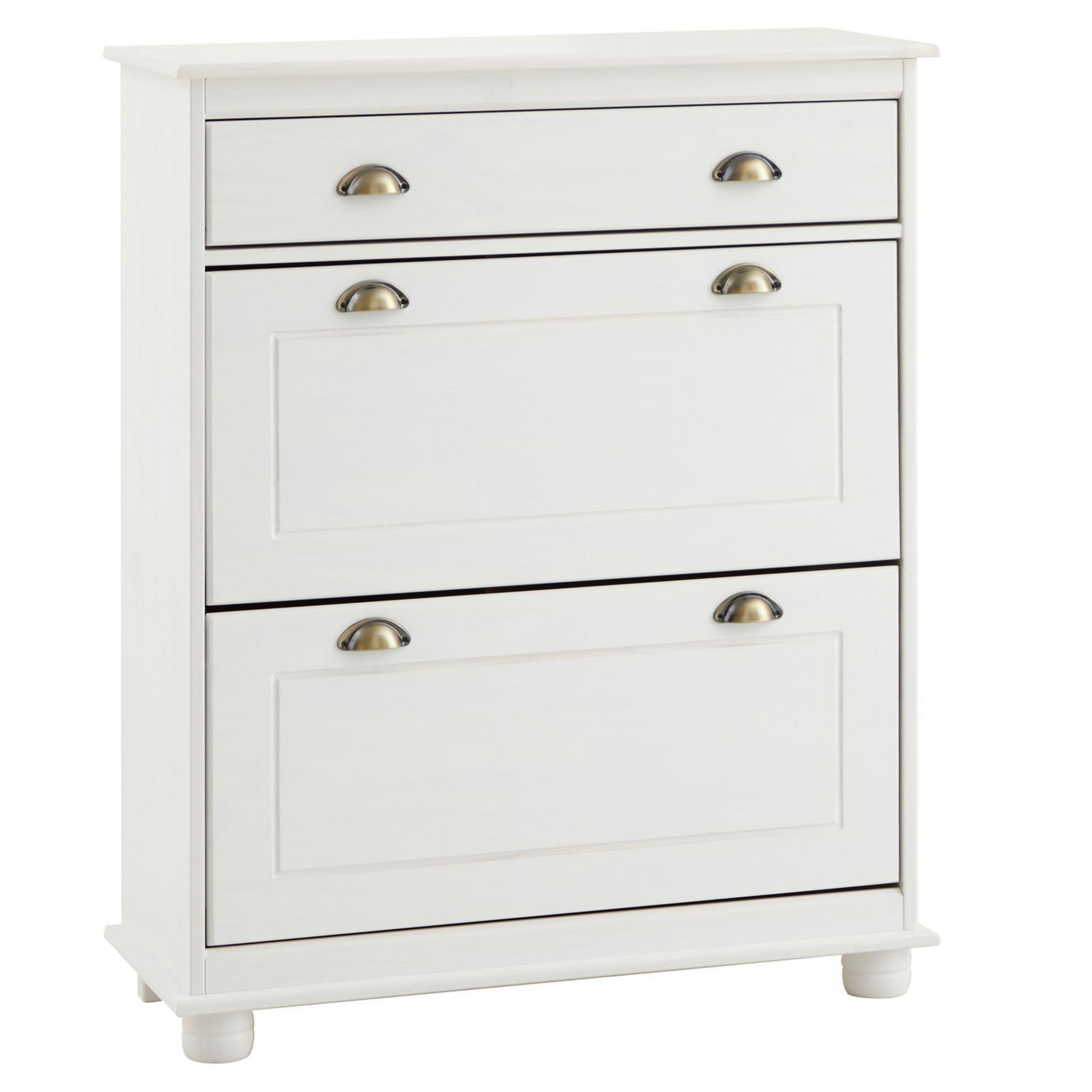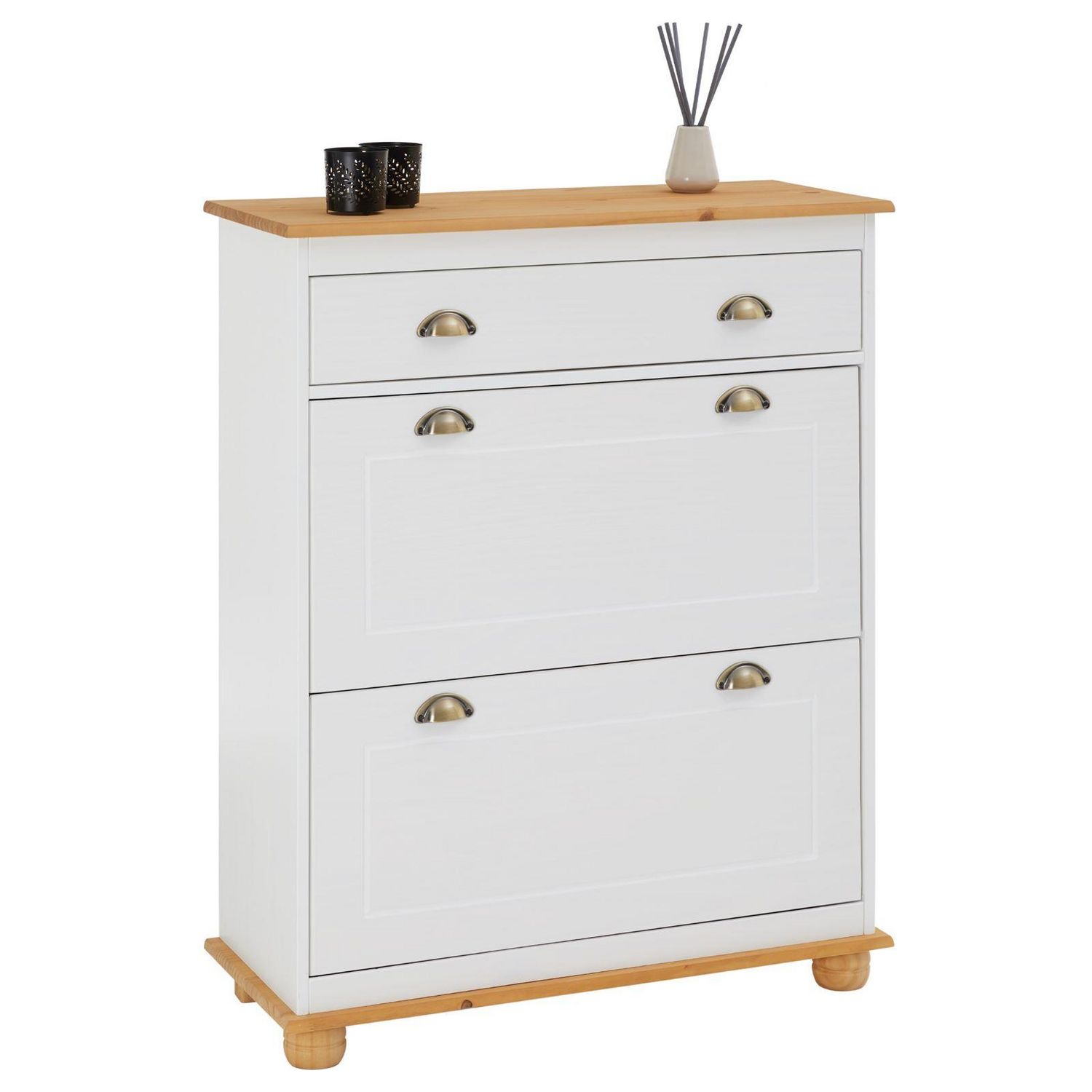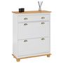 Meuble à chaussures en pin COLMAR, 2 abattants, lasuré blanc et brun
