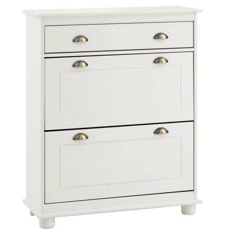 - Le meuble à chaussures est fabriqué en pin massif, disponible dans différents coloris.