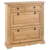 Meuble à chaussures en pin TEQUILA style mexicain, 2 abattants et 2 tiroirs, finition teintée/cirée