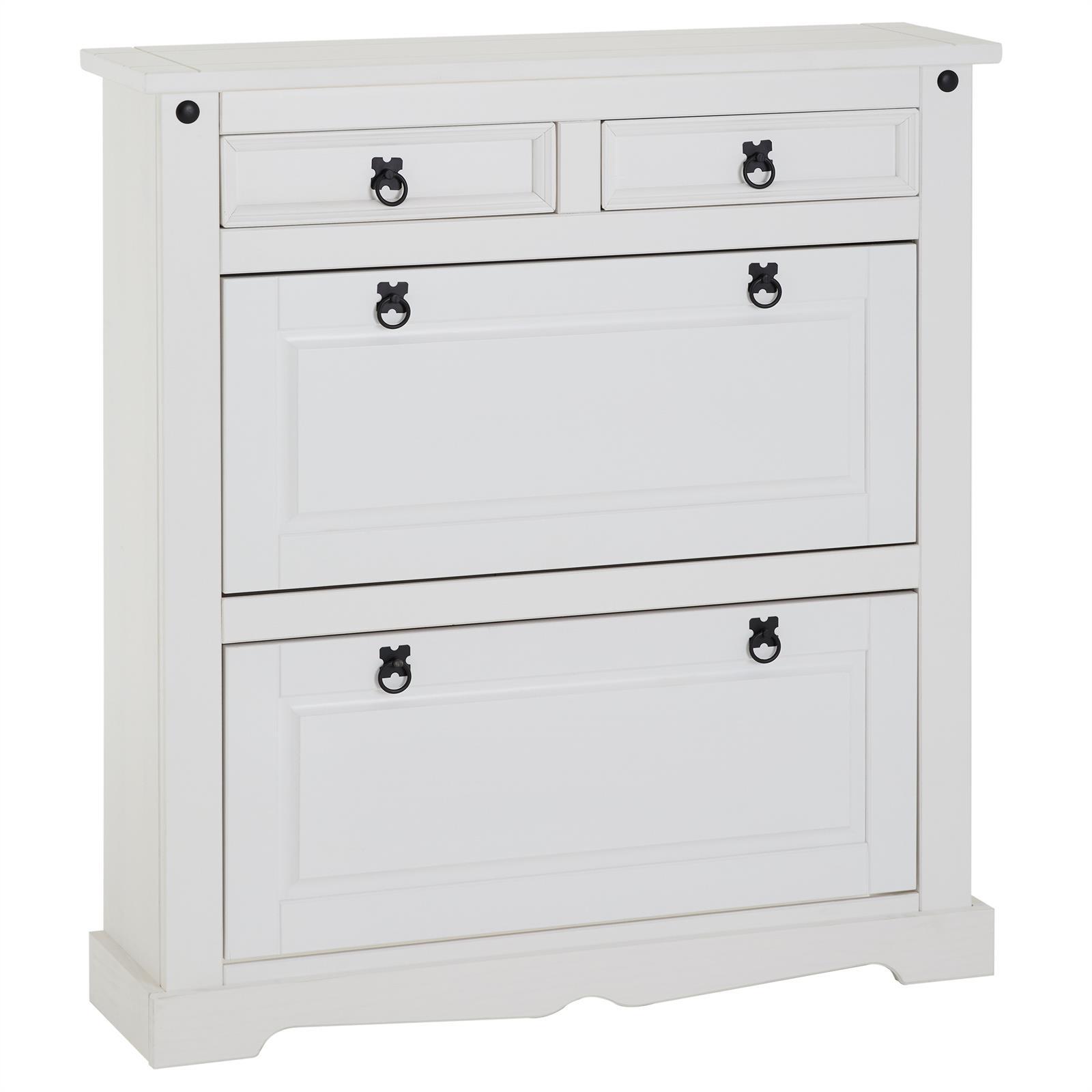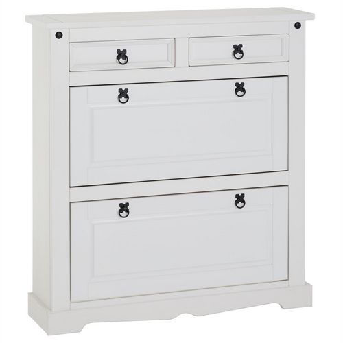 Meuble à chaussures en pin TEQUILA style mexicain, 2 abattants et 2 tiroirs