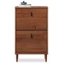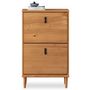 Apportez du style et de la fonctionnalité à votre entrée avec ce meuble compact et élégant. Conçu en bois massif avec un design naturel, il offre deux abattants permettant de ranger jusqu'à dix paires. Son format étroit optimise l'espace, idéal pour un couloir ou une petite pièce. Les poignées en cuir ajoutent une touche vintage. Son montage est facile et rapide, pour une meilleure organisation au quotidien.
