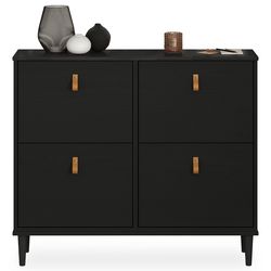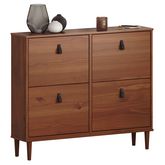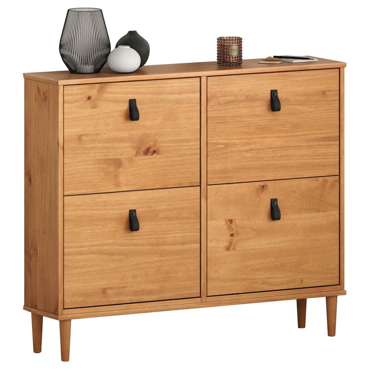 Le meuble à chaussures en pin Mikka 4 abattants ... est composé de 4 compartiments à chaussures, chacun avec 2 étagères, offrant ainsi une capacité totale d'environ 16 paires de chaussures. Le design épuré s'inspirant du style scandinave de ce meuble à chaussures apporte une touche de modernité et