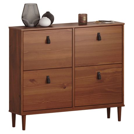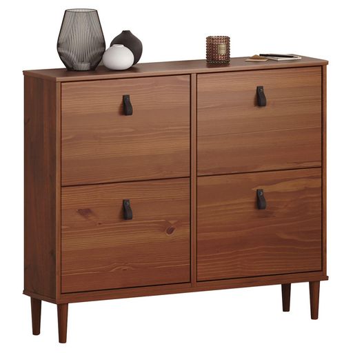 Meuble à chaussures MIKKA avec 4 abattants en pin massif lasuré chêne