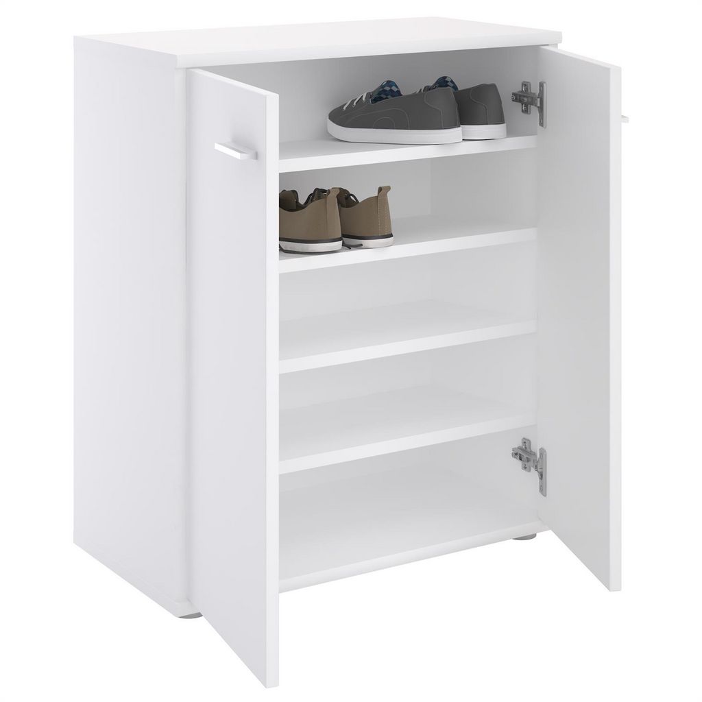 - Le meuble à chaussures est fabriqué à partir de panneaux de particules de bois, recouvert d'un mélaminé disponible dans plusieurs coloris.
