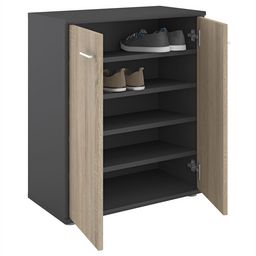Meuble à chaussures OLYMPE, en mélaminé gris mat et décor chêne sonoma