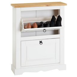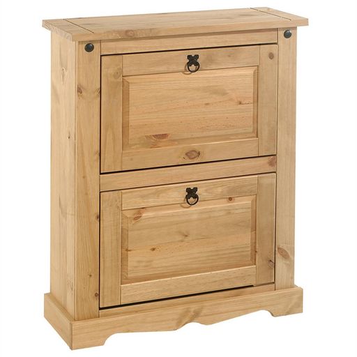 Meuble à chaussures TEQUILA avec 2 abattants, style mexicain en pin fintion teintée/cirée