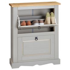 Meuble à chaussures TEQUILA avec 2 abattants, style mexicain en pin