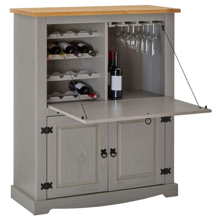 - Le meuble bar à vin est fabriqué en pin massif.