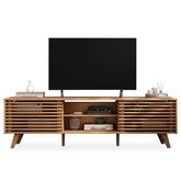 Meuble TV RIAN avec portes coulissantes, en bois massif - Coloris chêne