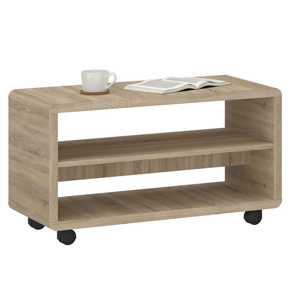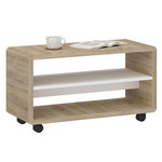 Meuble TV sur roulettes ISABA avec 2 niches, en mélaminé chêne sonoma et blanc