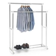 ... est idéal comme accessoire complémentaire pour le rangement de vos vêtements. Vous pouvez ainsi profiter de 2 tringles réglables en hauteur indépendamment l'une de l'autre, et agrandir ou réduire en longueur cette penderie selon l'espace disponible dans la pièce. Même quelques chaussures peuvent être stockées sur les barres du bas. Cette penderie est le compagnon parfait dans votre chambre, votre dressing ou votre entrée, très facile à déplacer avec ses roulettes.