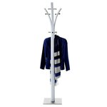 - La structure du porte-manteaux est en métal laqué noir ou blanc et le socle est recouvert d'une plaque en acier inoxydable.