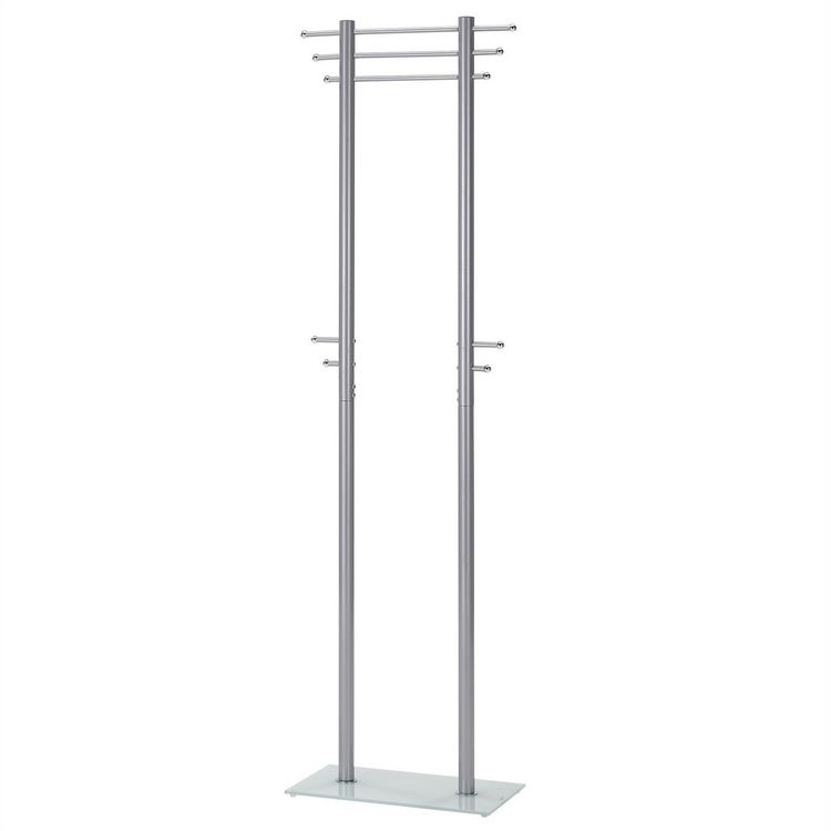 ... s'intègrera facilement dans votre intérieur de par son design simple mais moderne, et le peu de place qu'il occupera où que vous le placiez dans votre entrée. Ce porte-manteaux est équipé de 10 crochets et de 3 tringles à vêtements. Ainsi, vous pourrez facilement y accrocher manteaux et vestes légères, mais aussi sacs à main ou parapluies, pour les garder à portée main grâce aux crochets se trouvant à mi-hauteur. Ce portant à vêtements sur pied est disponible dans 2 versions : chromé ou couleur aluminium.