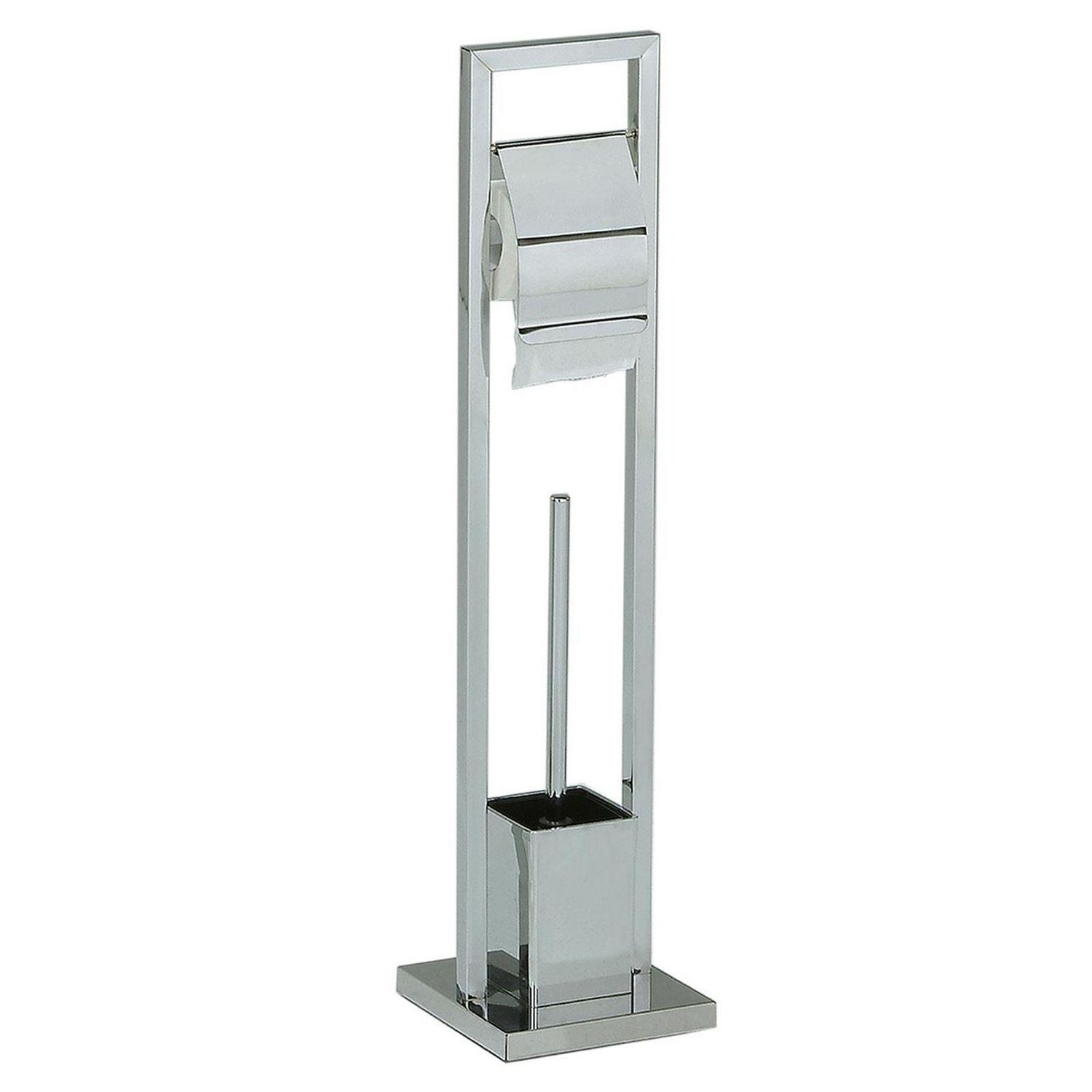 Porte-papier toilette TOMA avec porte brosse à WC, en métal chromé