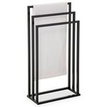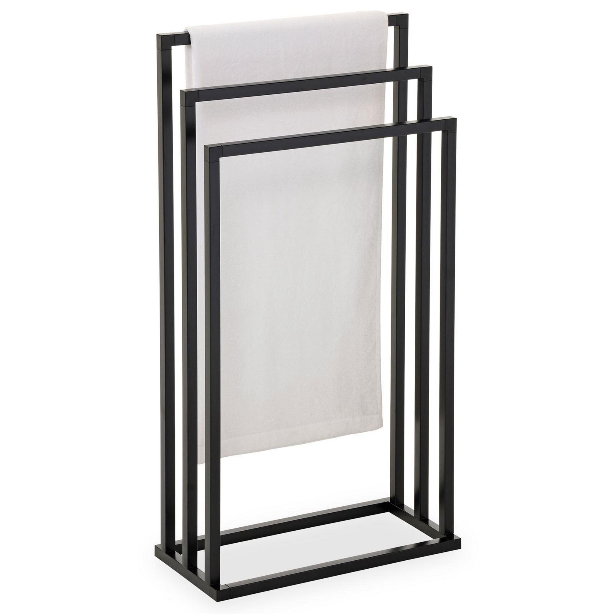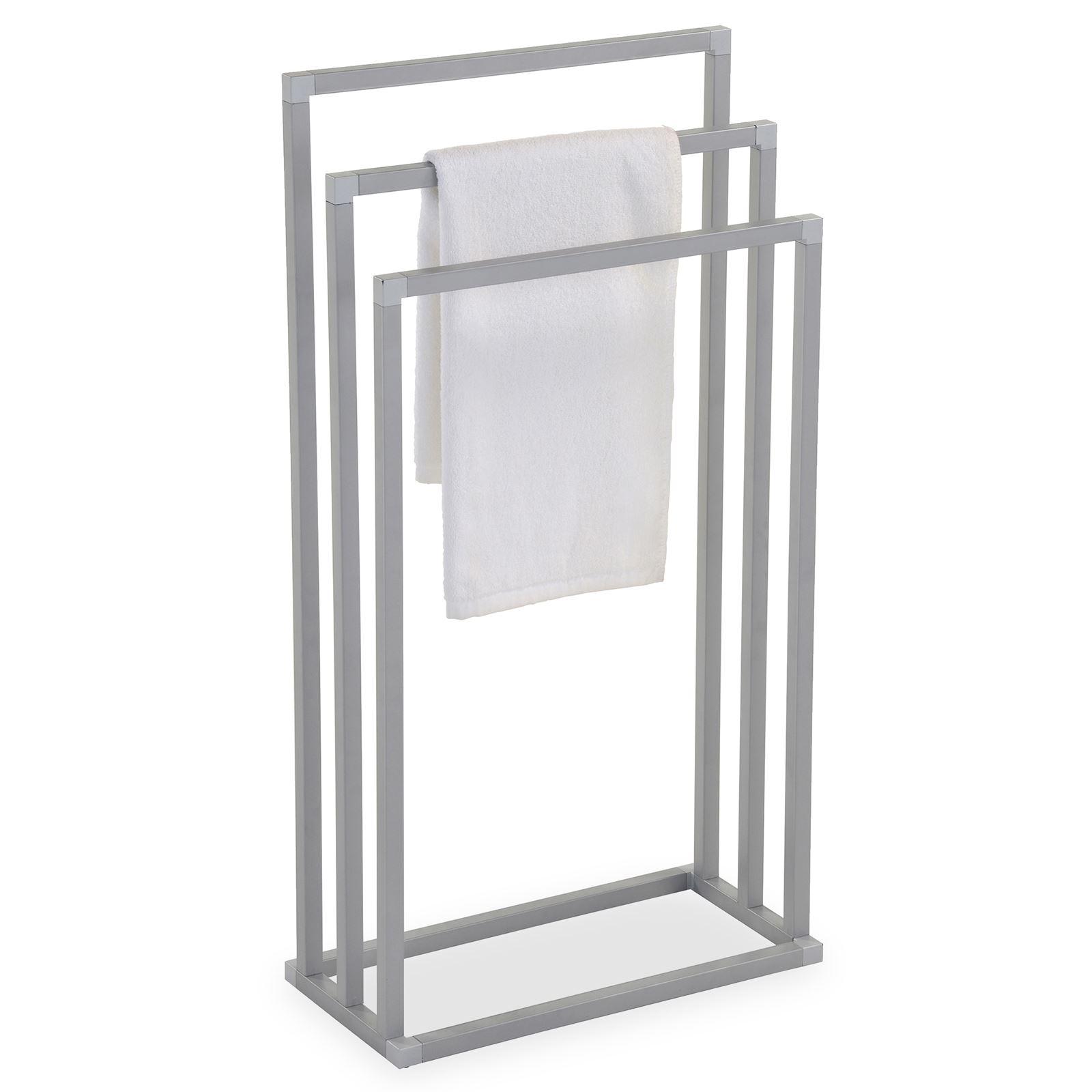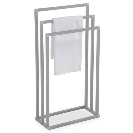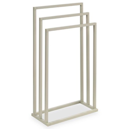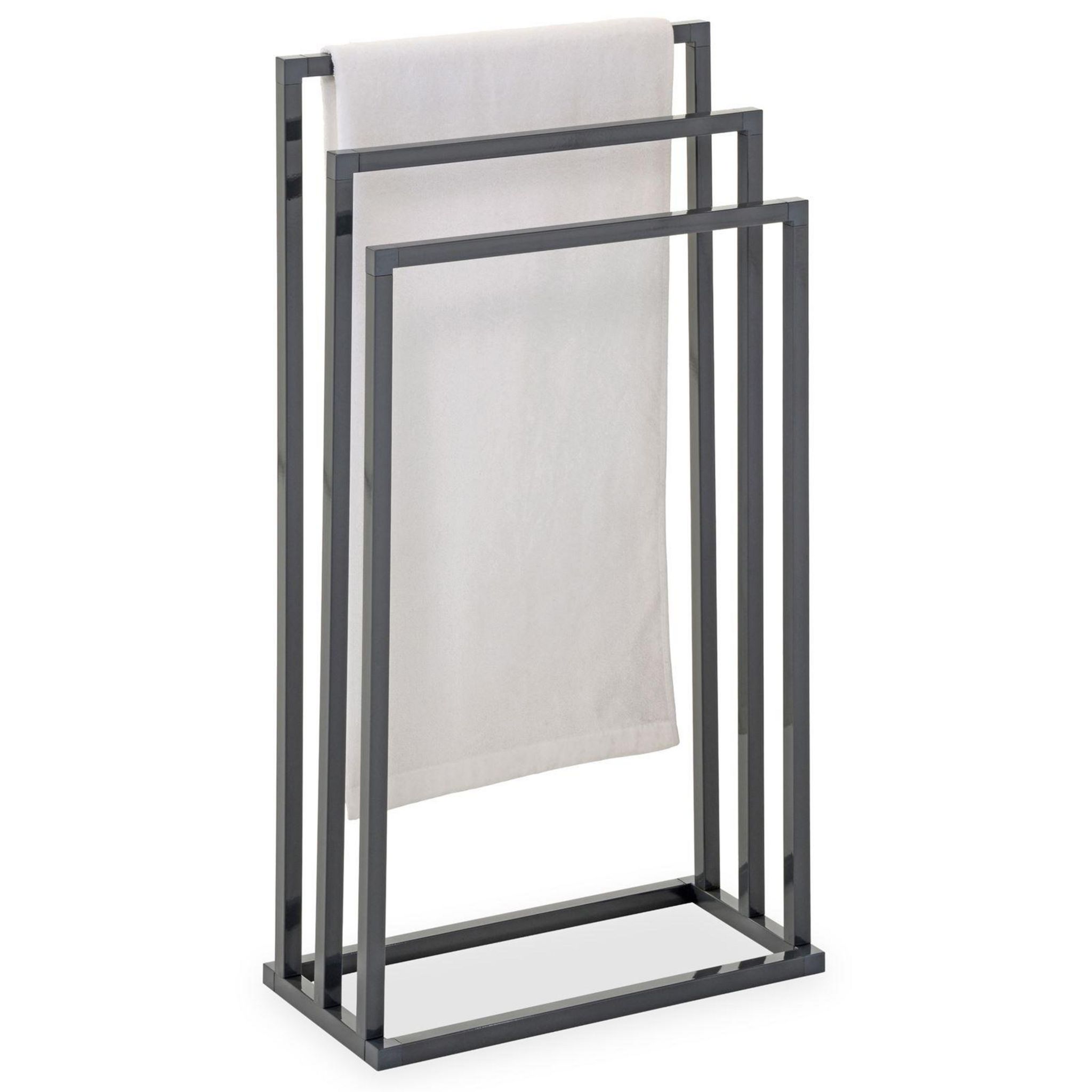 ... est l'accessoire idéal pour meubler efficacement votre salle de bain. Avec ses 3 tringles sur différentes hauteurs, vous pouvez étendre facilement toutes vos serviettes et draps de bain. Le séchage de votre linge sera d'autant plus rapide grâce à l'agencement des barreaux et leur espacement favorisant la circulation de l'air. Vous pouvez également utiliser ce porte-serviettes comme portant à vêtements dans une chambre ou un dressing, ou bien dans la cuisine pour y étendre les torchons. Ce portant disponible dans différentes finitions métalliques s'intégrera facilement à la déco de votre salle de bain ou de vos toilettes.