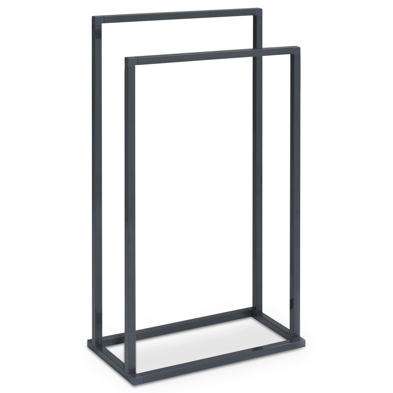... est une solution pratique et esthétique pour meubler efficacement votre salle de bain. Avec ses 2 tringles sur différentes hauteurs, vous pourrez étendre facilement toutes vos serviettes et draps de bain. Il peut aussi être utilisé dans une chambre pour des vêtements ou dans une cuisine pour des torchons. Sa structure en métal et son design à la fois moderne et épuré, en font un meuble élégant qui s'intégrera facilement à la décoration de votre salle de bain.