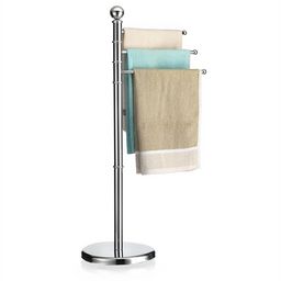 ... deviendra vite indispensable dans votre salle de bain. Grâce à ses 3 tringles pivotantes sur 360°, le séchage de votre linge sera facilité, il vous suffira de les placer dans la position de votre choix. Les différentes hauteur des barreaux vous permettront d'y étendre toutes vos serviettes et draps de bain, même les plus long. Ce porte-serviettes peut également être utilisé dans votre cuisine pour y suspendre vos torchons. Avec sa structure en métal, il s'intègrera facilement avec la déco de votre salle de bain.