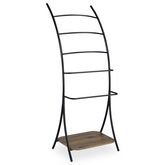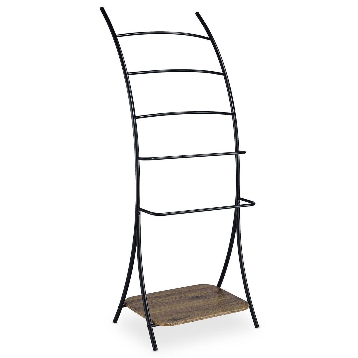 Porte-serviettes sur pied EDY 5 niveaux en métal - Noir et chêne sauvage