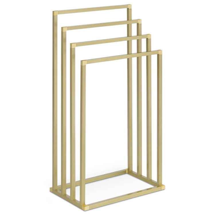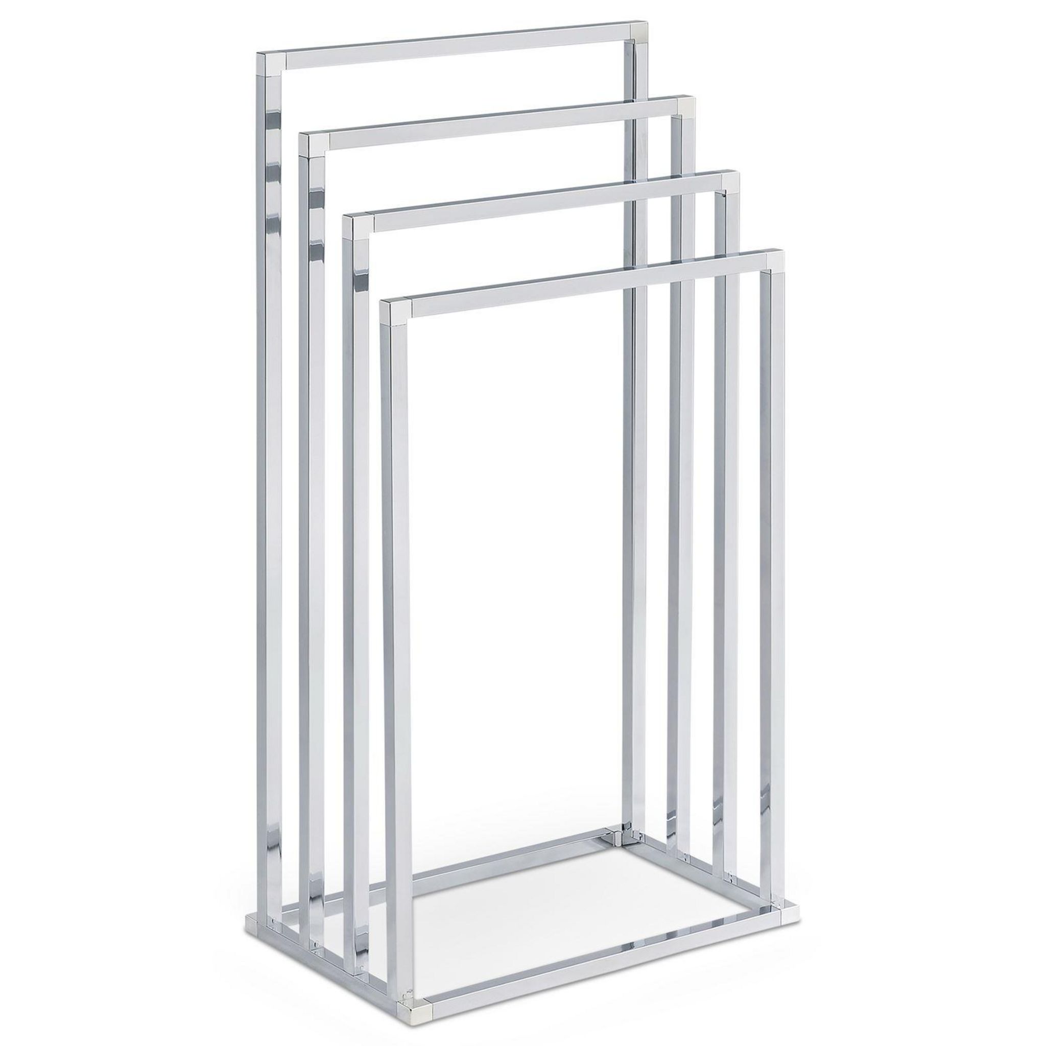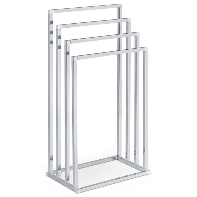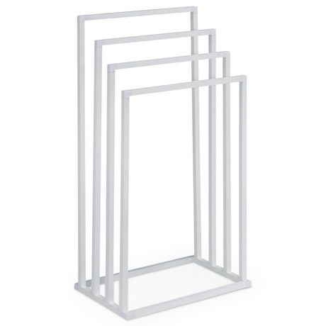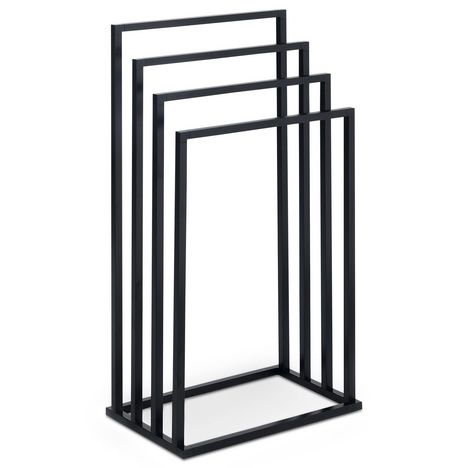 Le porte-serviettes Senza est équipé de 4 barres placées à différentes hauteurs, permettant d'étendre serviettes et draps de bain. Son agencement favorise la circulation de l'air, ce qui accélère le séchage du linge. Polyvalent, il peut également être utilisé comme portant à vêtements dans une chambre ou un dressing, ou pour suspendre les torchons dans une cuisine. Ce modèle, proposé en plusieurs finitions métalliques, s'intègre facilement dans la décoration d'une salle de bain ou de toilettes.