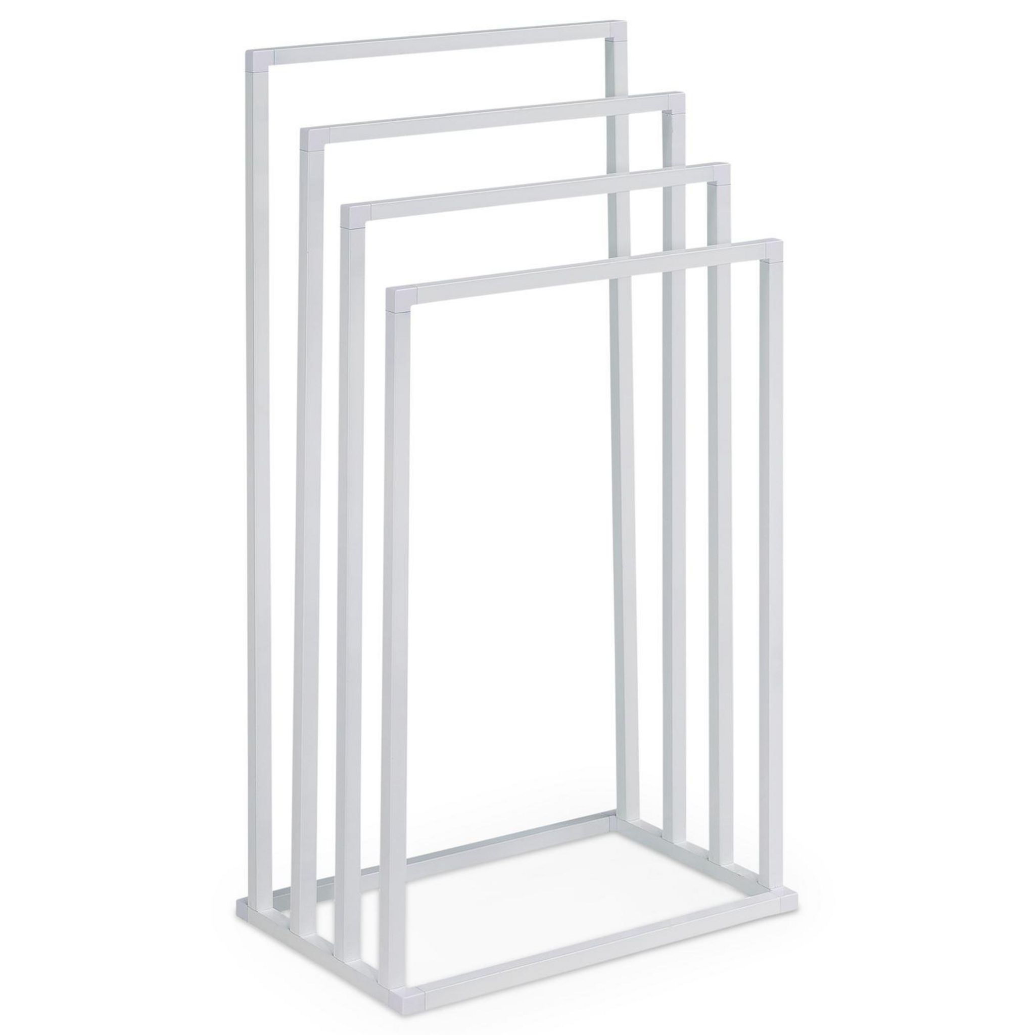 Le porte-serviettes SenzaLe porte-serviettes Senza est équipé de 4 barres placées à différentes hauteurs, permettant d'étendre serviettes et draps de bain. Son agencement favorise la circulation de l'air, ce qui accélère le séchage du linge. Polyvalent, il peut également être utilisé comme portant à