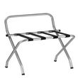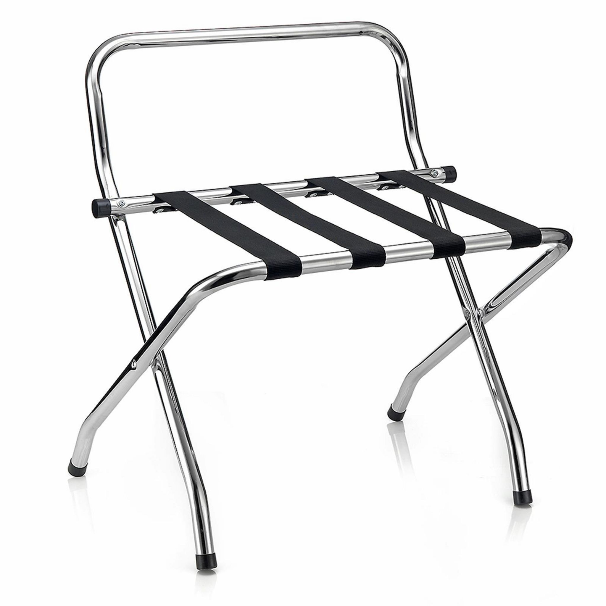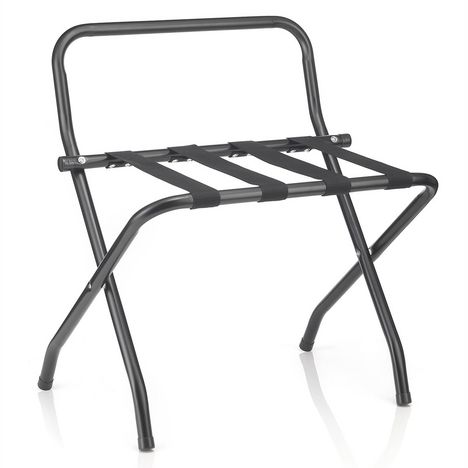... est idéal comme accessoire complémentaire dans une chambre d'amis ou une chambre d'hôte, que ce soit chez vous, ou bien dans un gîte ou un hôtel. Vous pouvez ainsi profiter d'un support où déposer votre valise ou votre sac de voyage en hauteur, et vous n'aurez plus besoin de vous baisser pour accéder à vos affaires. De plus, ce porte-bagages avec ses 4 sangles résistantes est pliable, vous pourrez donc le ranger facilement dans un coin de la pièce dès que vous n'en avez plus l'utilité. Enfin, les 4 pieds sont recouverts d'un embout en caoutchouc, protégeant ainsi votre sol, et la barre de soutien rehaussée permet de protéger votre mur une fois la valise grande ouverte.