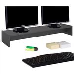 ... est l'accessoire de bureau indispensable pour améliorer la qualité de vos conditions de travail. En effet, ce support ergonomique vous permettra de réhausser votre écran, et ainsi travailler plus confortablement avec un écran à votre hauteur de vision. De par sa longueur exceptionnelle de 100 cm, vous pourrez l'utiliser pour installer un grand écran ou même 2 écrans à la fois. Un renfort sous la tablette est prévue pour plus de stabilité, et vous pourrez ainsi cacher les câbles à l'arrière tout en gardant vos accessoires de bureau à l'avant. Enfin, le mélaminé confère à ce meuble de rangement une meilleure résistance aux frottements et aux salissures et le rend très facile d'entretien.