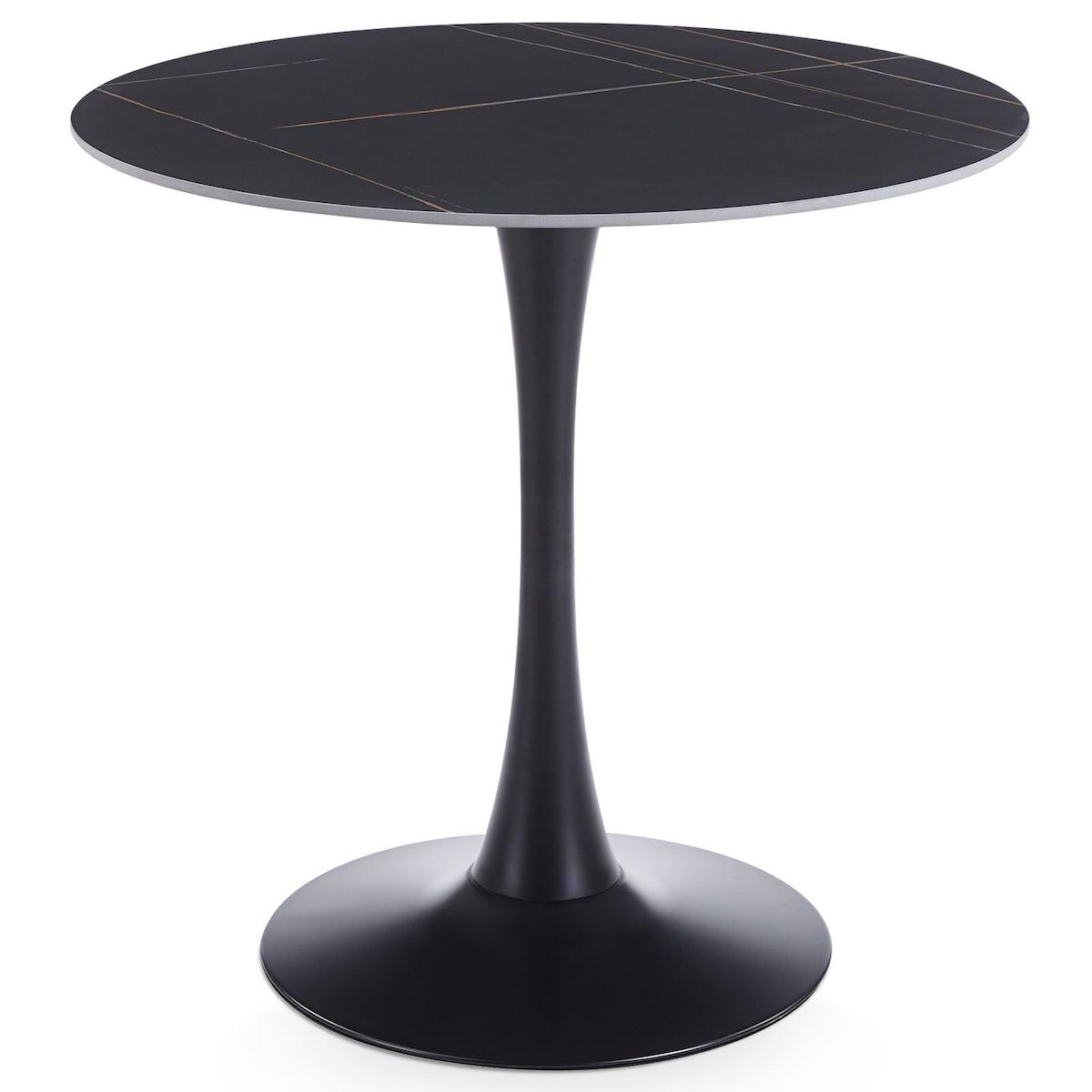 Table à manger ronde LOIRELa table à manger ronde LOIRE est une pièce de design à part entière. Elle se caractérise par un plateau en céramique de 80 cm de diamètre et 7 mm d'épaisseur, dont la surface lisse se nettoie facilement. Son pied tulipe en métal laqué, doté d'une base large (Ø 49 cm), gara