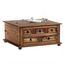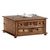 Table basse coffre en pin TEQUILA style mexicain, avec 5 tiroirs, lasuré brun