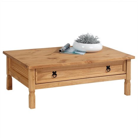 Table basse en pin TEQUILA style mexicain, avec 1 tiroir, finition teintée/cirée