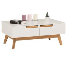 La table basse Tibor ... suit la tendance actuelle des meubles au style scandinave. Les 2 tiroirs sans poignée apparente, d'un côté de la table, et les 2 compartiments ouverts, de l'autre côté, vous offrent suffisamment d'espace de stockage pour toutes vos affaires personnelles, ainsi protégées et