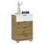 - La table de chevet est fabriquée à partir de panneaux de particules de bois, recouvert d'un mélaminé imitation chêne artisan et blanc.
