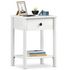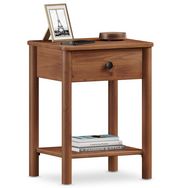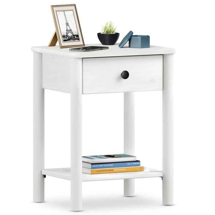 Table de chevet Apoana avec tiroir Cette table d'appoint est fabriquée en bois de pin massif, offrant un espace de rangement pratique avec un tiroir spacieux et une tablette au niveau du sol. Idéale pour placer des livres ou des objets décoratifs, elle s'intègre parfaitement dans une chambre ou un