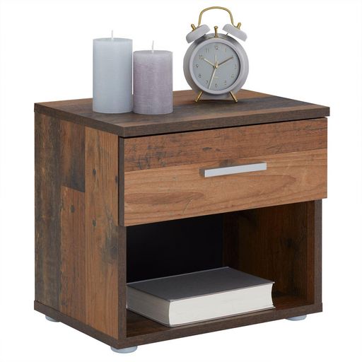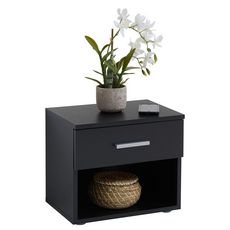 - La table de chevet est fabriquée à partir de panneaux de particules de bois, recouvert d'un mélaminé disponible dans plusieurs coloris.