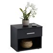 ... est disponible dans différents coloris très modernes qui vous permettront de l'associer facilement avec le style de votre chambre à coucher. Installée à côté de votre lit, cette table de nuit au design simple mais pratique accueillera volontiers une lampe, un radio-réveil, votre téléphone ou votre tablette, de la lecture ou quelques objets de décoration. Equipée d'un tiroir mais aussi d'une niche ouverte, vous pourrez également garder à portée de main d'autres affaires personnelles. Enfin, le mélaminé confère à cette table une meilleure résistance aux salissures et la rend très facile d'entretien.