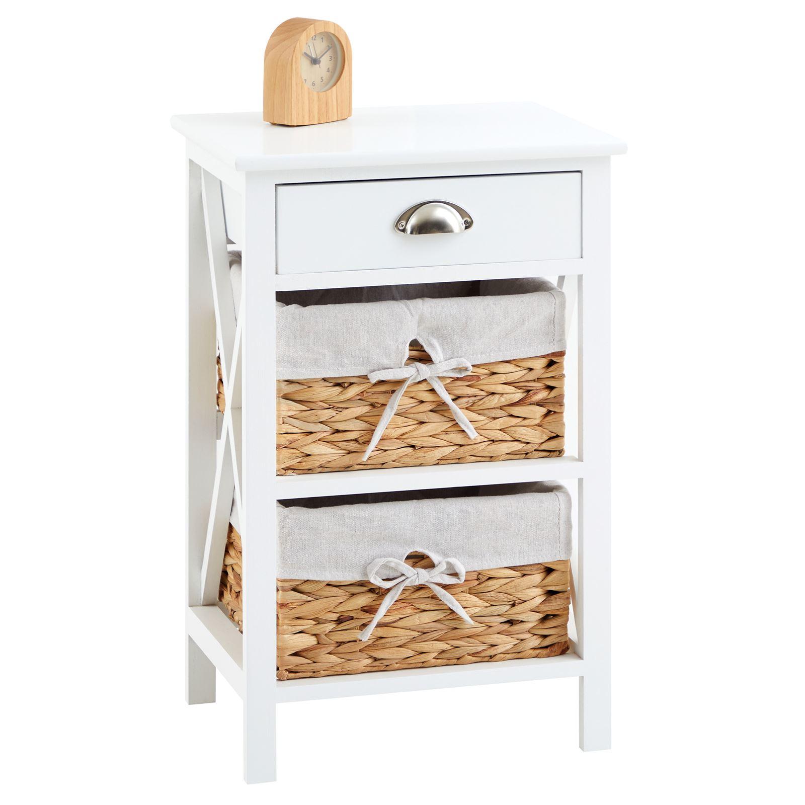 - Contenu de la livraison : table de chevet, 2 paniers en fibre naturelle avec insert en tissu, sans décoration