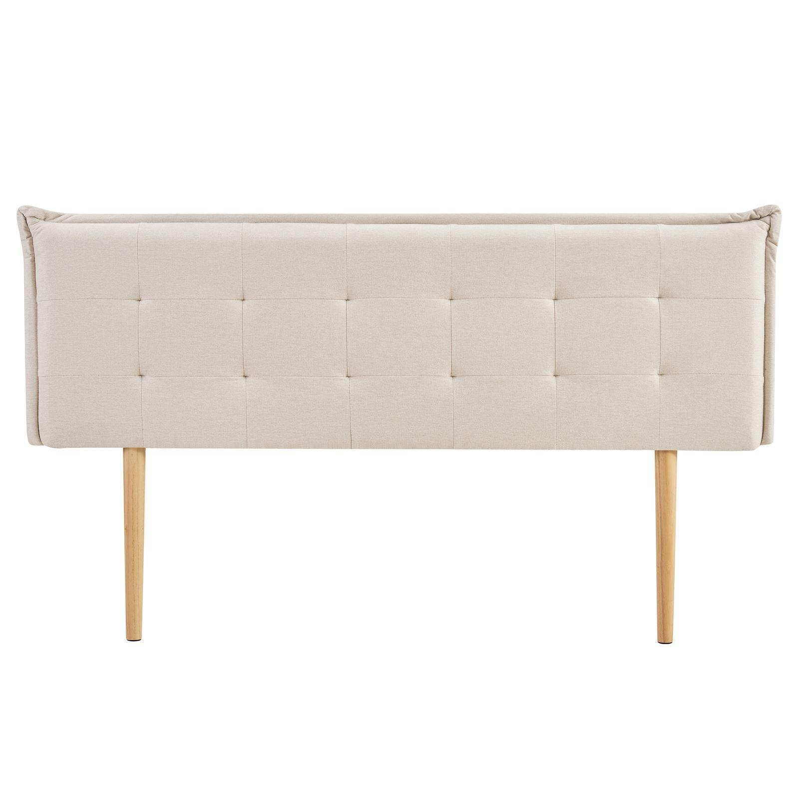 Transformez votre chambre avec cette tête de lit moderne et pratique. Avec son rembourrage et son design décoratif capitonné, elle met l'accent à la fois sur le confort et l'élégance pour une ambiance chaleureuse. Conçue pour les lits jusqu'à 160 cm de largeur, elle se distingue par son tissu résistant au boulochage et ses pieds en bois naturel qui assurent une installation stable et sans effort.