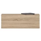 ... est parfait pour compléter l'ameublement de votre pièce avec style et design ! Son plateau supérieur est suffisamment spacieux pour accueillir une de la décoration, des livres, ou un cadre, tandis que le tiroir permet de ranger discrètement vos affaires. Cette étagère murale peut également servir de table de chevet suspendue dans votre chambre, apportant une touche moderne à votre décoration murale. Fixable à la hauteur souhaitée, le tiroir suspendu offre un espace de rangement supplémentaire tout en économisant de la place par rapport à un meuble traditionnel. De plus, le mélaminé lui assure une résitance au tâches et facilité son entretien.