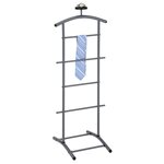 ... se rendra vite indispensable ! Son cintre vous permettra de ranger vos vestes et vos chemises sans les froisser, et vous pourrez suspendre vos pantalons sur les différentes tringles. De plus la petite tablette vide-poche, sera très utile pour déposer votre montre et bijoux. De forme simple, ce valet est à la fois fonctionnel et élégant et donnera une touche de modernité à votre chambre.