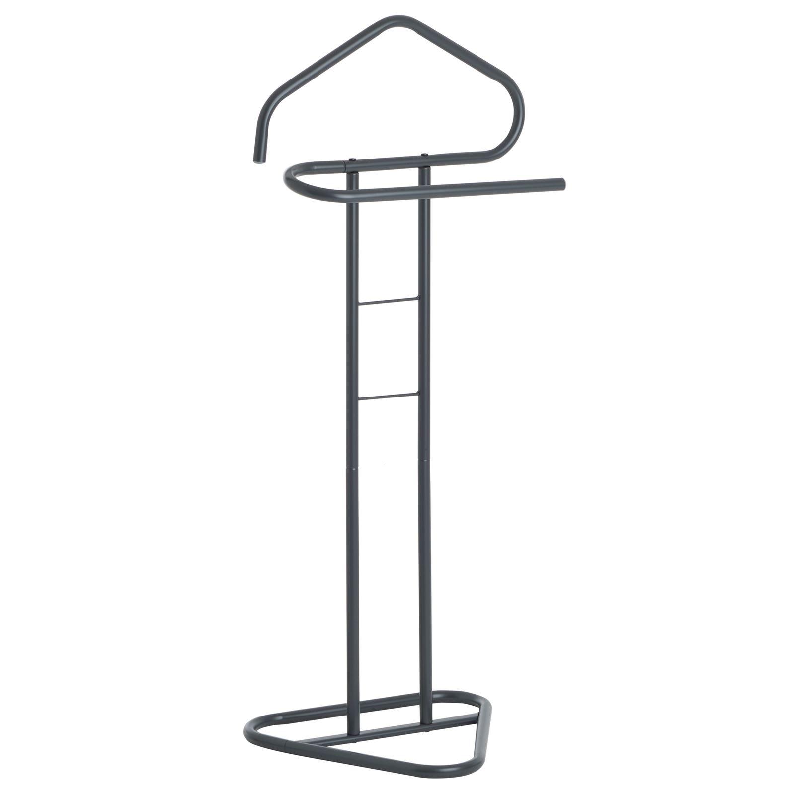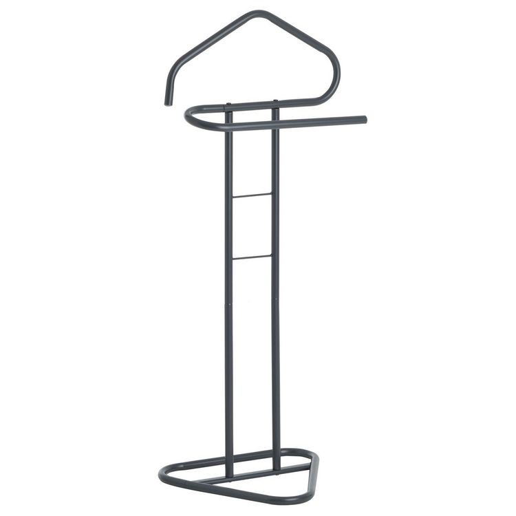 - Le valet est fabriqué en métal laqué noir, blanc, gris ou chromé.