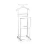 Valet de chambre MEDINA chevalet de nuit double portant pour vêtements, en MDF et métal laqué blanc