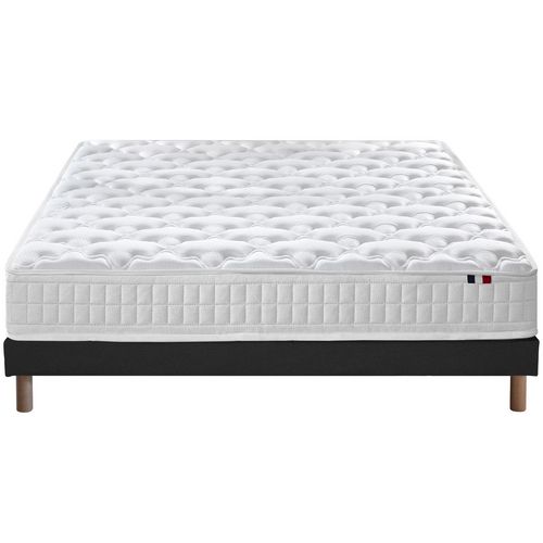 Un matelas alliant soutien et confort Un maintien ferme et un accueil équilibréLe matelas est doté de ressorts ensachés qui offrent une indépendance de couchage et un soutien précis. Il contient 594 ressorts en 140x190 et 700 ressorts en 160x200, assurant une répartition homogène du poids.