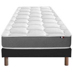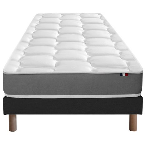 Découvrez un sommeil réparateur avec cet ensemble matelas mousse haute résilience et sommier. Conçu pour offrir un soutien ferme et équilibré, il répond aux attentes des dormeurs exigeants, combinant confort durable et qualité de fabrication française. Profitez d'une literie adaptée à vos besoins, pensée pour durer.