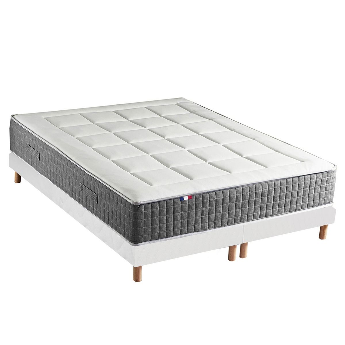 Ensemble Matelas Ressort 7 zones H.28cm + Sommier Fabriqué en France MAX