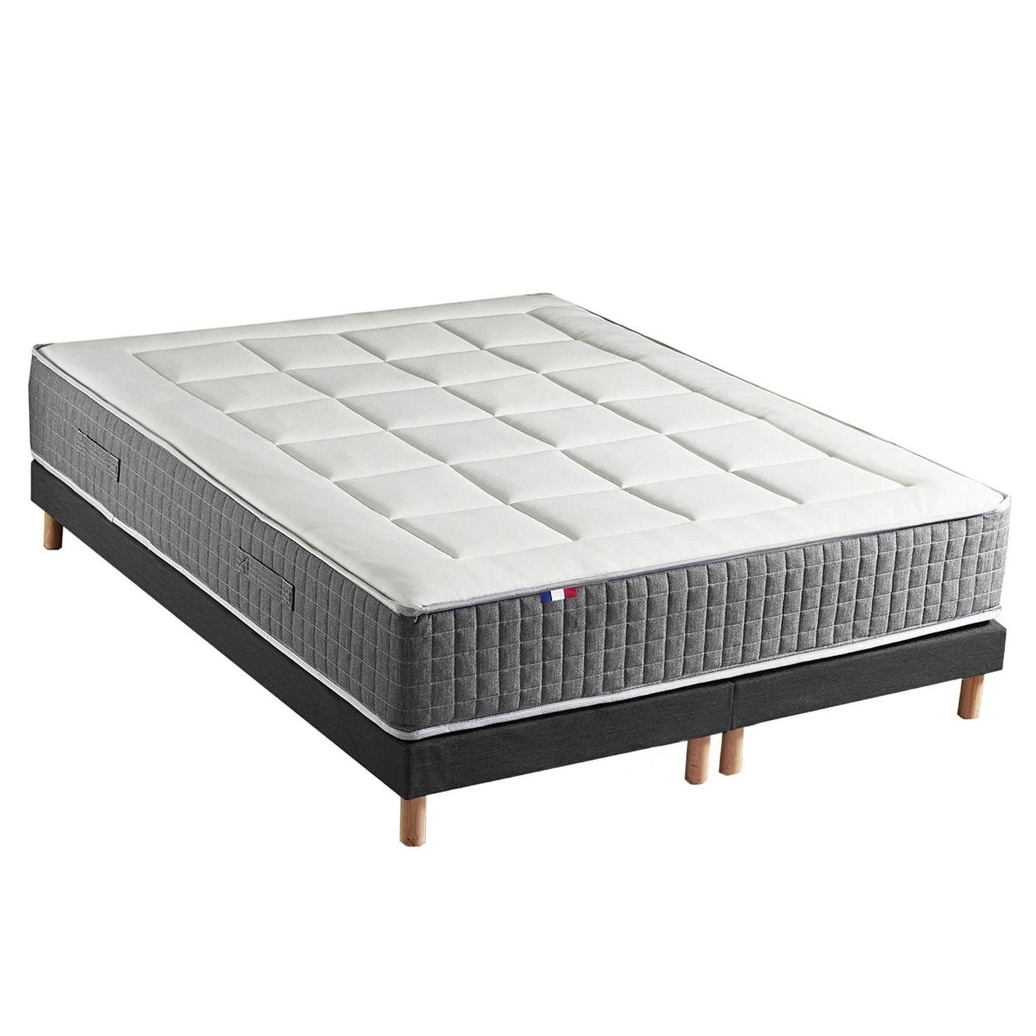 Ensemble Matelas Ressort 7 zones H.28cm + Sommier Fabriqué en France MAX