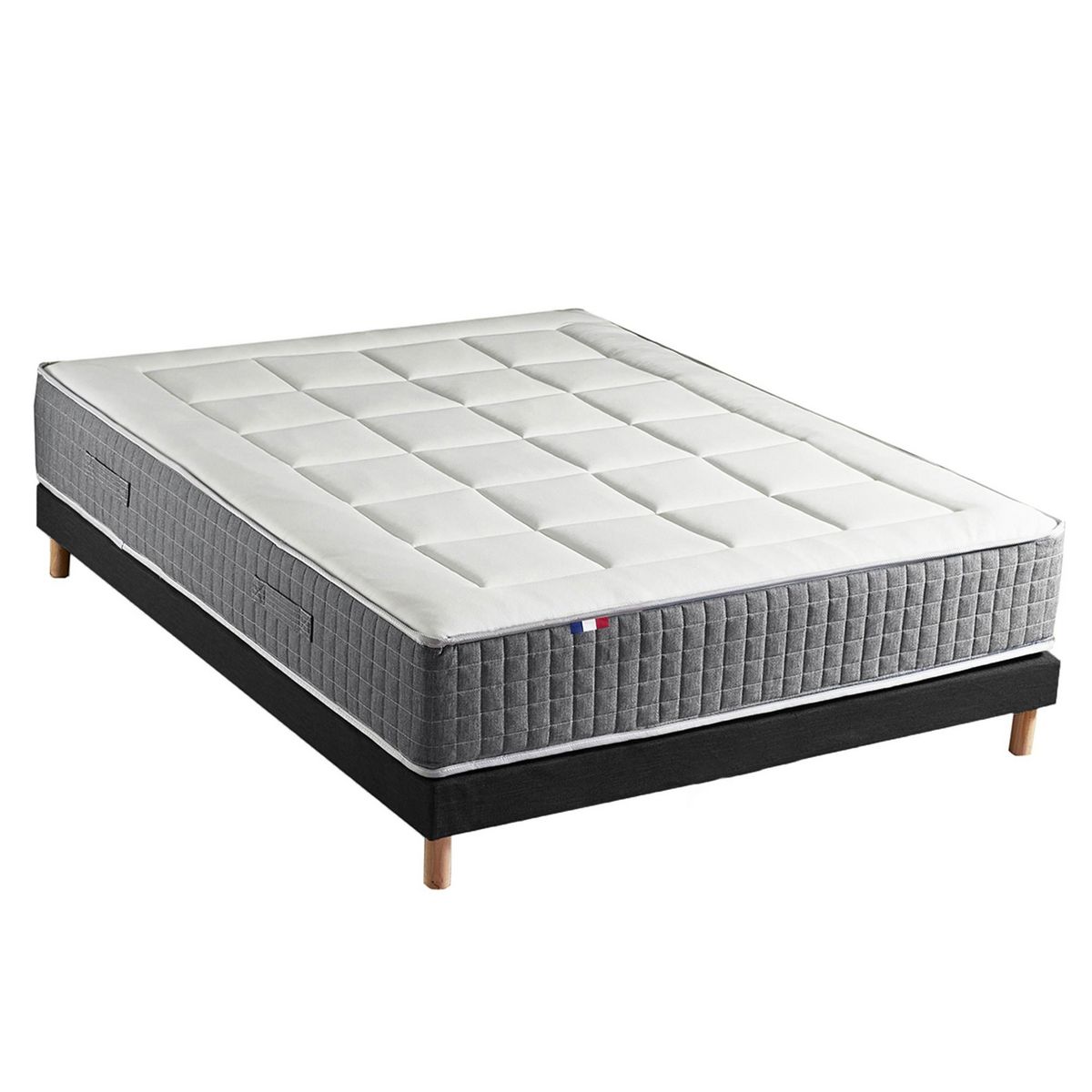 Ensemble Matelas Ressort 7 zones H.28cm + Sommier Fabriqué en France MAX