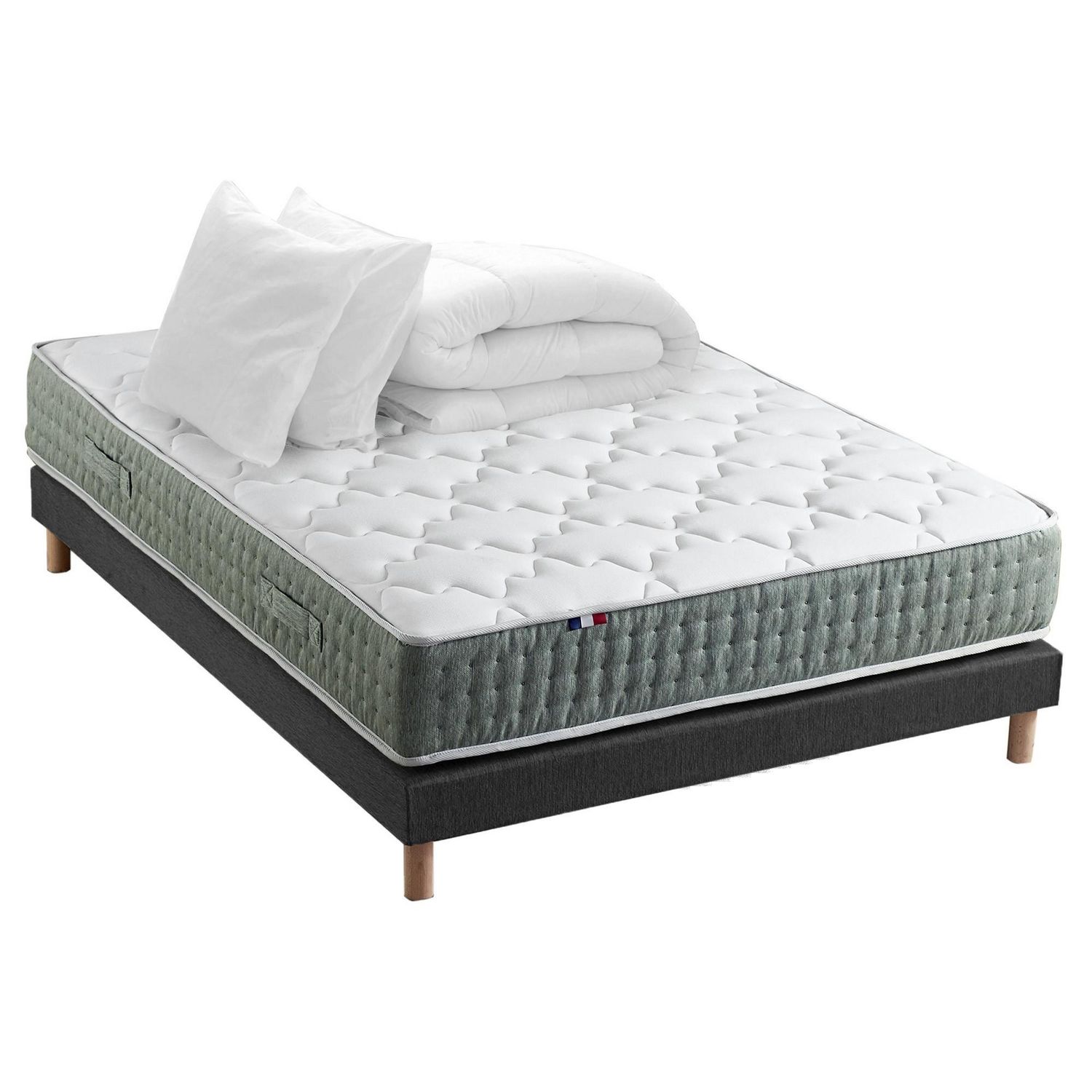 Ensemble matelas Ressort 7 zones HYGGE + Sommier + couette + oreillers Fabriqué en France