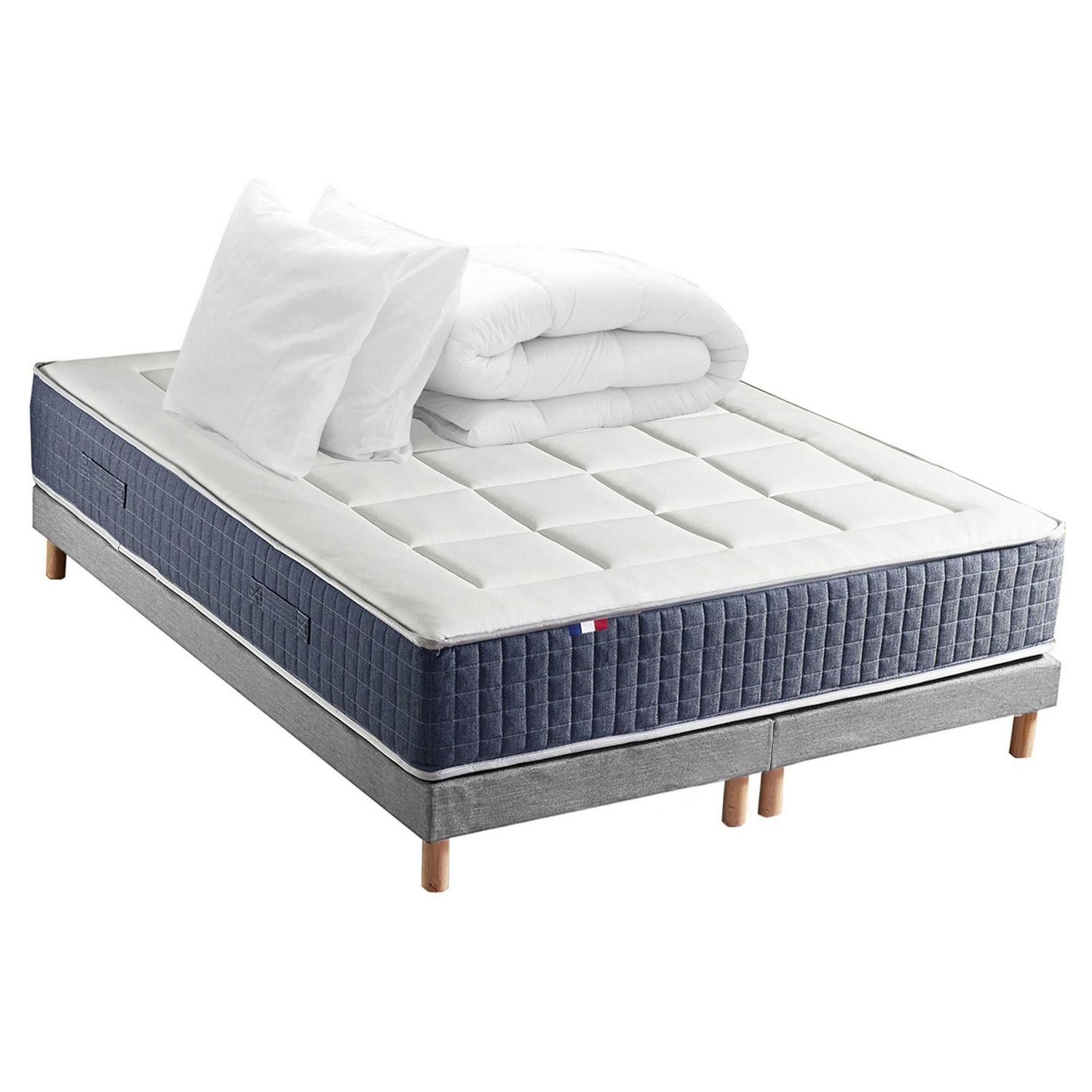 Ensemble matelas ressort 7 zones KING STYLE, mémoire de forme, sommier, couette, oreillers